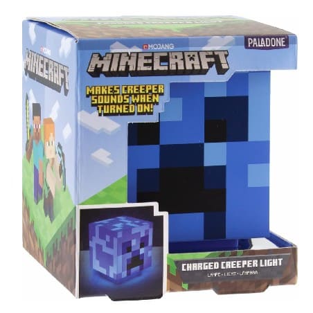 ¡Cuidado! Un rayo ha caído y ha transformado al mob más icónico en un Charged Creeper. Esta lámpara de Paladone no es solo una pieza de decoración, es una experiencia inmersiva para los verdaderos fans de Minecraft. Al encenderla, emite el sonido oficial del Creeper, añadiendo ese toque de adrenalina (¡pero sin explosiones!) a tu zona de juego.